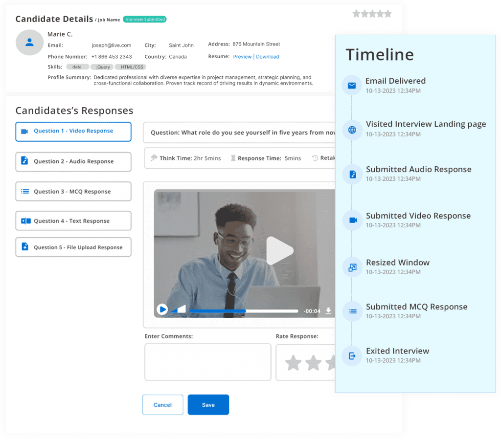 Monitor live to ensure fair and secure interviews with video proctoring.